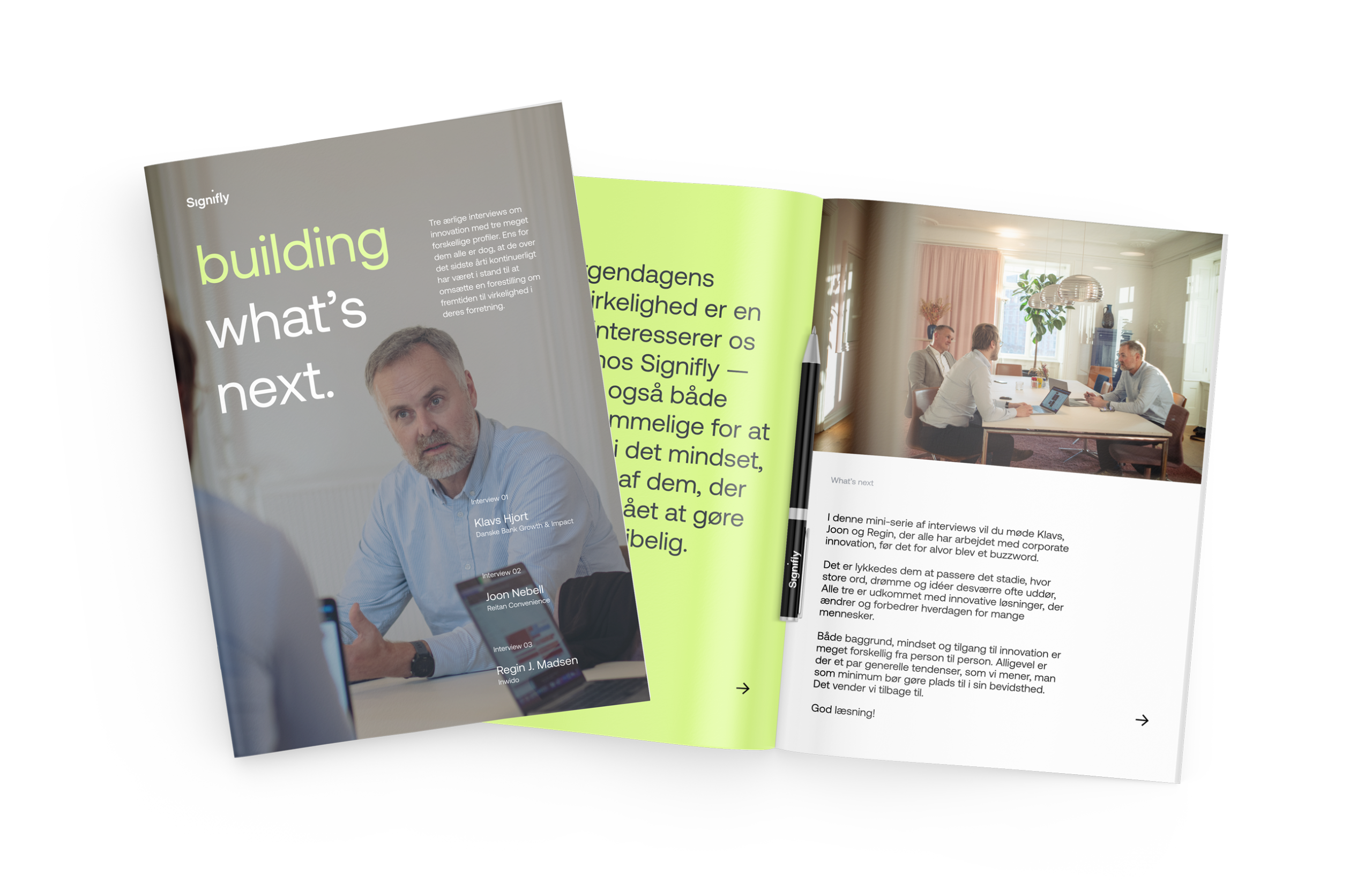 I denne mini-serie af interviews vil du møde Klavs (Danske Bank, Growth & Impact), Joon (Reitan Convenience) og Regin (Inwido), der alle har arbejdet med corporate innovation, før det for alvor blev et buzzword.Det er blevet til tre ærlige interviews om innovation med tre meget forskellige profiler. Ens for dem alle er dog, at de over det sidste årti kontinuerligt har været i stand til at omsætte en forestilling om fremtiden til virkelighed i deres forretning.